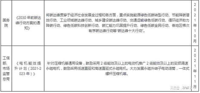 能效要求日益提升。節(jié)能減排是我國(guó)經(jīng)濟(jì)發(fā)展從高速增長(zhǎng)到增長(zhǎng)轉(zhuǎn)變要完成的任務(wù),也是實(shí)現(xiàn)“碳中和”的必然手段之一。因此隨著不斷重視節(jié)能減排,“碳中和”進(jìn)程不斷推進(jìn),對(duì)空氣壓縮機(jī)行業(yè)的節(jié)能要求日趨嚴(yán)格,對(duì)空氣壓縮機(jī)能效等級(jí)的追求也進(jìn)入新的階段。